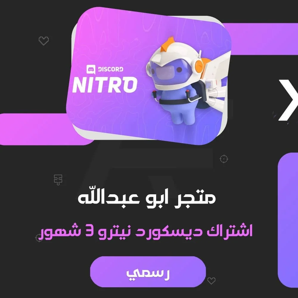 - عند شراءك لهذا المنتج ستحصل على رابط تفعيل دسكورد نيترو لمدة 3 شهور رسمي 100% ومضمون من السحب